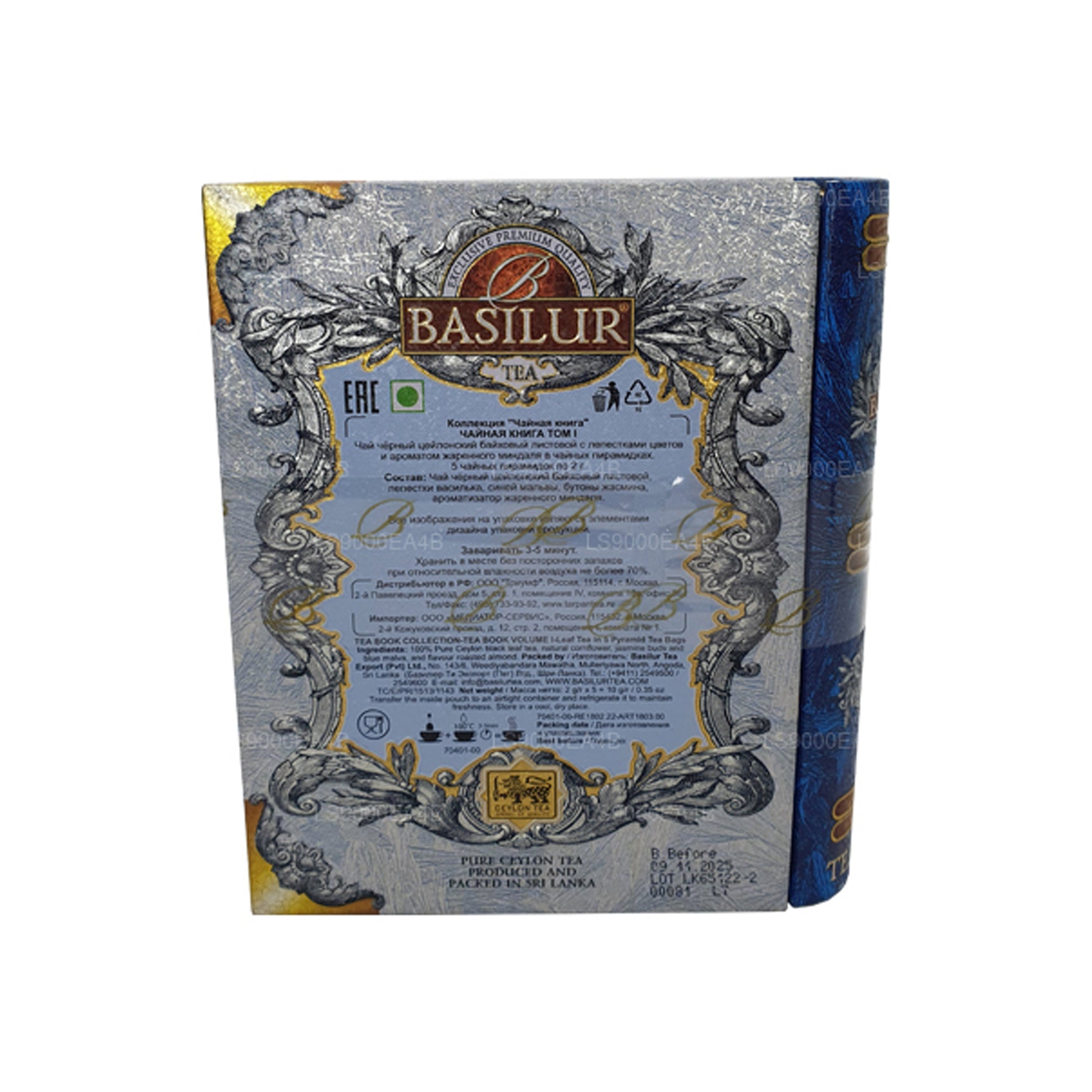 Basilur presents its discerning tea drinkers a taste of the European charm together with pure Ceylon tea. A unique combination of natural blue cornflowers, blue malva and Jasmine flowers together with nutty almond flavour provides an exquisite experience where one can enjoy with all five senses, the luxury of Basilur tea. A tea which will create memories to last a lifetime, a tea which will invigorate your soul and will leave you relaxed. Pure Ceylon black leafy tea together with the taste of almond is a sheer compliment to a decadent sweet delight.