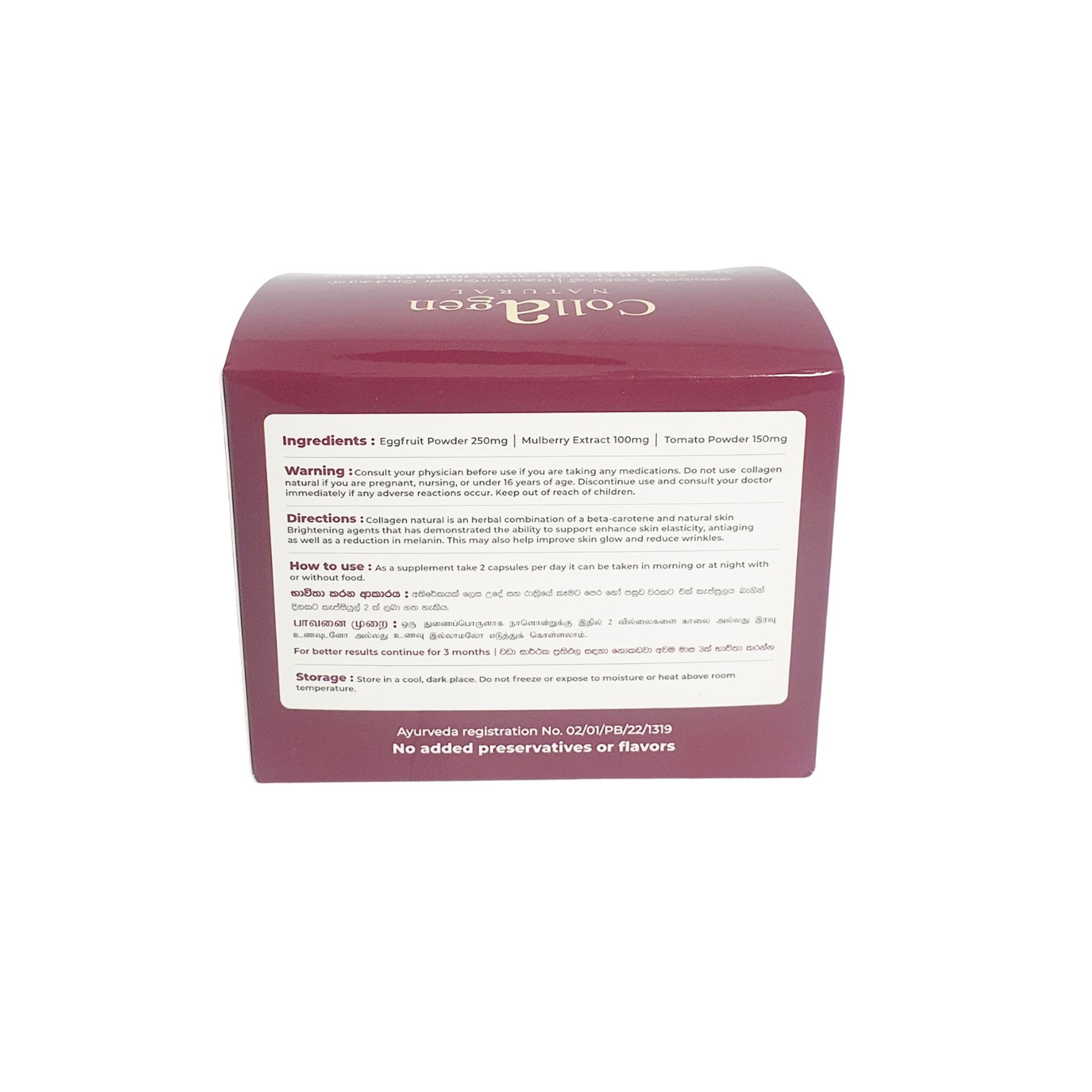Collagen natural is an herbal combination of a beta carotene and naturatalin mitening agents that has demonstrated the ability to support eneance skin elasticity, antiaging as well as staduction in melanity, This may also help improve skin glow and reduce wrinkles.